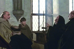 수도사들의 연쇄적인 죽음을 조사하기 위해 문제의 수도원에 도착한 윌리엄 수사修士(숀 코너리 분)는 ‘연쇄 살인사건’보다 더 충격적인 장면을 목격한다. 윌리엄이 막 수도원 근처에 다다랐을 때, 피골이 상접하고 남루한 차림의 수많은 주민이 산 위에 자리 잡은 거대한 수도원 아래에 모여 무엇인가를 기다리고 있다. 이윽고 수도원 담장 한편에 뚫어놓은 쓰레기 배출구가 열리고, 음식 쓰레기가 산 아래로 쏟아져 내린다. 거지꼴을 한 주민들은 수도원 음식 쓰레기를 성령이라도 강림하는 것처럼 두 팔 벌려 영접하며 썩은 배추잎 하나라도 더 차지하려고 아귀다툼을 벌인다. 윌리엄 수사는 혼란스러워진다. “이 마을의 주민들은 왜 저렇게 거지가 됐을까. 주민들이 저토록 굶주릴 때 교회는 왜 저들을 구원하기 위해 아무것도 안 하고 있는 것일까.” 참상의 전모는 곧 밝혀진다. 수도원에서의 첫날을 보내고 아침에 수도원 뜰에 내려간 윌리엄 수사는 주민들이 왜 그토록 굶주려서 수도원 쓰레기나 먹으며 연명하고 있는지 알아차린다. 수도원 앞마당에 기다란 테이블이 놓이고 그 행색만으로 보면 분명 수도원의 구호품을 받으러 온 거지들이라고 볼 수밖에 없는 행색의 사람들이 테이블 앞에 줄지어 서 있다.
