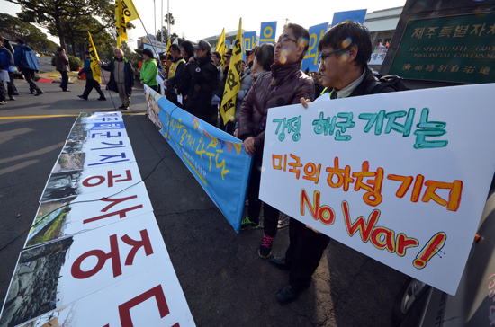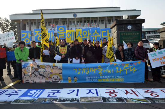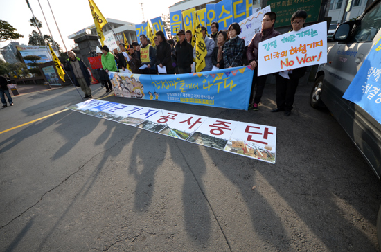 이들은 이어 “해군기지는 결코 평화를 지킬 수 없다. 제주도 전역을 군사기지로 만들게 될 것”이라며 “강정의 평화, 제주의 평화는 군비경쟁의 거점으로 만드는 평화가 아니라 지금 그대로의 평화가 진정한 평화”라고 강조했다.