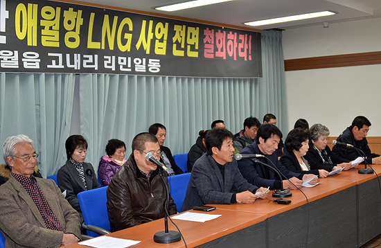 애월항 공사 고내리 주민대책위원회는 29일 오전 제주도의회 도민의 방에서 기자회견을 갖고 공사 재개를 규탄했다.