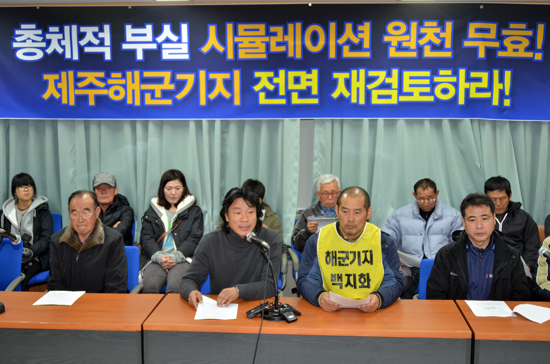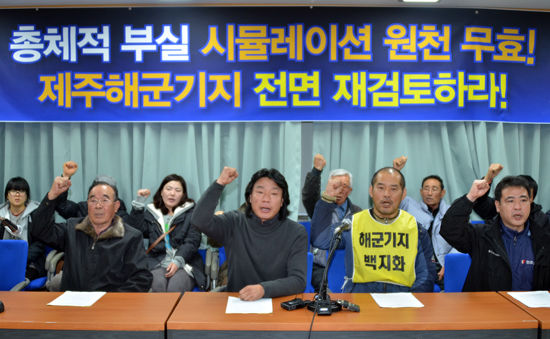 제주해군기지를 반대하는 단체들이 지난달 31일 발표된 제3차 시뮬레이션 결과 보고와 관련 “설계오류를 재확인 한 것”이라며 ‘공사 즉각 중단’과 ‘재검토’를 촉구했다.