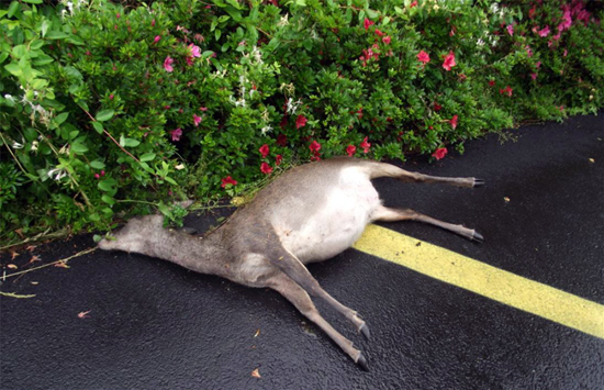 5일 제주시에 따르면 지난해 제주시 관내에서 로드킬로 인해 죽은 노루는 모두 72마리다. 이는 2011년 47마리에 비해 약 50% 증가한 것이다. 부상당한 노루를 구조한 사례도 지난해에는 120마리로 2010년 67마리, 2011년 55마리에 비해 2배 가량 늘어났다.