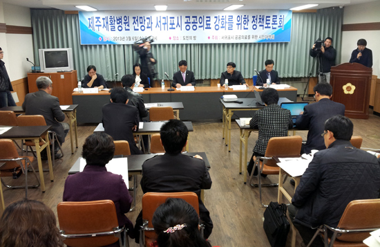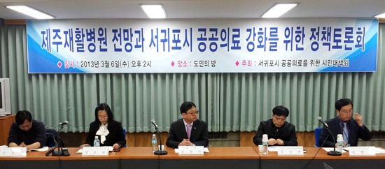 ‘제주 재활병원의 전망과 서귀포지역 공공의료강화를 위한 정책토론회’가 서귀포시 공공의료를 위한 시민대책위 주최로 6일 오후 제주도의회 도민의 방에서 열렸다. 토론회는 제주도의회 강경식 의원의 좌장으로 진행됐다.