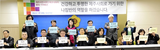 시민단체연대회의는 "제주개발의 역사를 반성하게 하며 새로운 제주미래 비전을 개척해 나갈 것"이라며 "지역정치의 폐단을 뿌리뽑고 풀뿌리 주민자치가 정착되도록 도민의 삶과 연관된 지역의 현안 문제에 대해 적극적인 연대의 정신을 발휘하겠다"고 포부를 밝혔다.