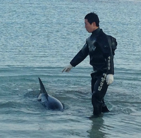 제주해경은 2일 오전 6시 30분경 함덕해수욕장 해변을 산책하던 최모(36세, 경기도 안양시 거주)씨가 함덕해수욕장 모래사장에 갇힌 돌고래를 발견·신고하자 제주파출소 경찰관· 아쿠아플라넷 제주팀과 함께 구조작업에 나서 오전 8시경 돌고래를 안전하게 바다로 돌려보냈다.