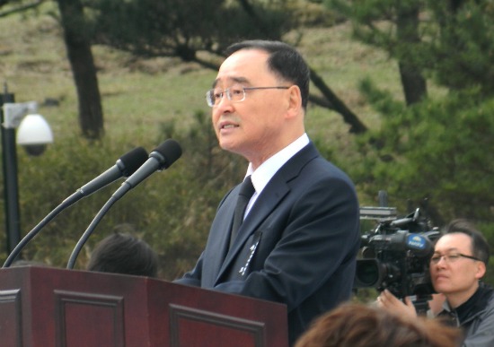 정부를 대표해 추념식에 참석한 정홍원 총리는 추념사를 통해 “그동안 ‘위령제’로 치러지던 이 행사를 금년에는 정부가 주관하는 ‘추념식’으로 거행하게 됐다”면서 “먼저 4.3당시 안타깝게 희생되신 영령들의 영전에 머리 숙여 애도의 뜻을 표하면서 명예회복을 소망해온 희생자 가족 여러분의 아픔이 덜어지게 되기를 바란다”며 4.3영령들 앞에 고개를 숙였다.