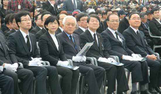 이날 추념식에는 국가행사로 처음 치러진 만큼 정치권에서도 여·야 지도부가 총출동했다.