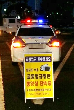 서귀포경찰서는 "경찰관이 캠코더를 이용, 단속할 경우 민원제기 소지가 없도록 사전에 ‘캠코더 단속중’이라는 입간판을 설치, 위반 장면을 촬영한다"며 "해당 자료는 경찰서 민원실에서 검토 위반사실이 명확할 경우 위반차량 운전자에게 '교통법규 위반차량 신고관련 사실확인요청서'가 발송, 범법차량 처리 절차가 이루어진다"고 밝혔다.