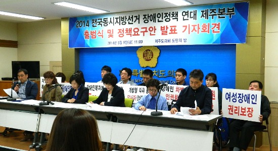 6.4지방선거를 앞두고 제주도내 7개 장애인단체와 전국 12개 장애인단체가 뭉쳐 '2014전국동시지방선거 장애인정책연대' 제주본부를 출범시켰다.