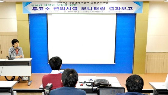 제주장애인인권포럼은 ‘투표소 편의시설 모니터링 결과’를 15일 오후 2시 제주도의회 도민의 방에서 발표했다.