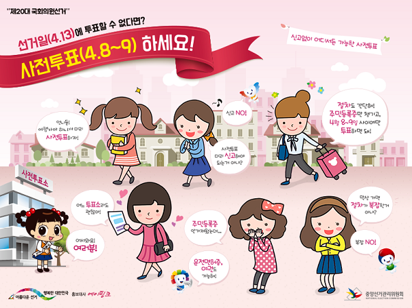 제20대 국회의원선거 유권자들은 8일부터 9일까지 전국에 설치된 3511개 사전 투표소(도내 43개소)에서 투표할 수 있다.