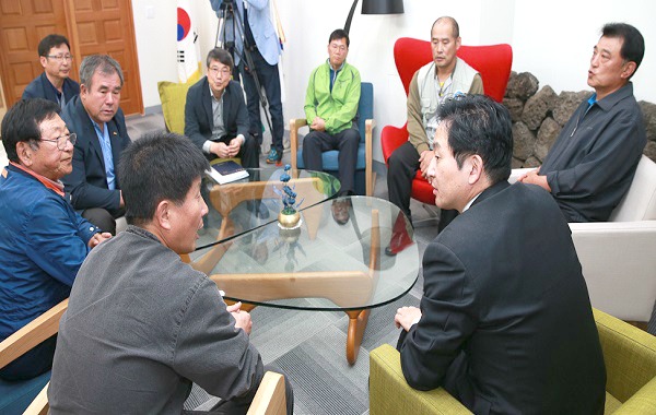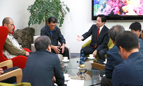 원 지사는 9일 오후 4시30분 도청 집무실에서 조경철 마을회장을 비롯해 강동균 전 마을회장, 고권일 반대대책위원장 등 주민 7명과 면담을 가졌다. 공식 면담은 2014년 11월 13일 이후 1년 6개월 만이다.