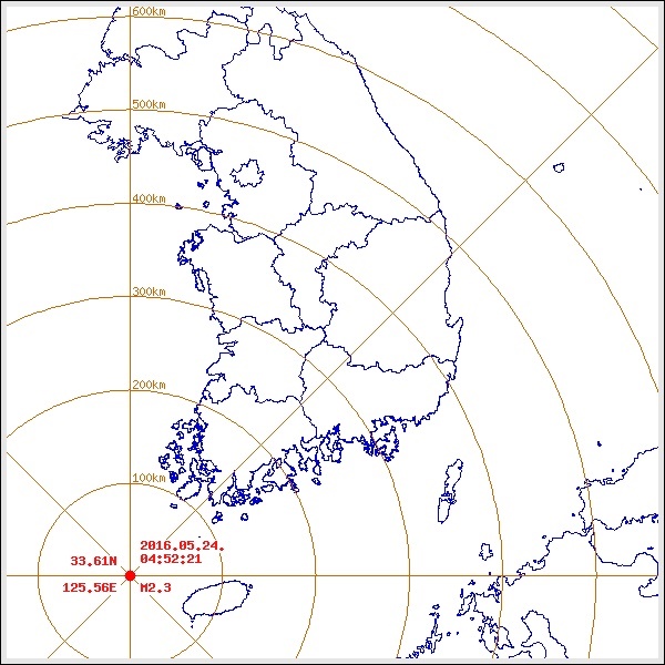 24일 오전 4시 52분 21초께 제주시 한경면 고산리 서북서쪽 66㎞ 해역에서 규모 2.3의 지진이 발생했다.