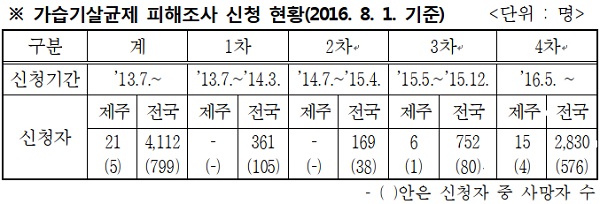 제주에 가습기 살균제 피해자들의 피해접수를 위한 접수처가 만들어진다.