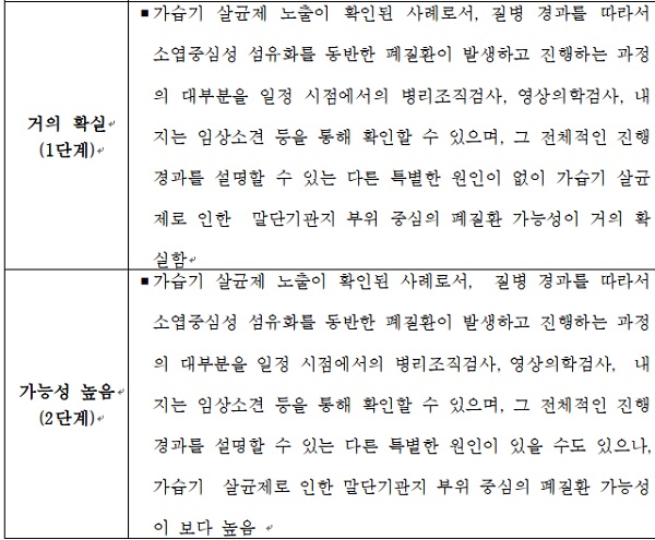 1~2단계일 경우 가습기살균제 피해자로 인정된다.