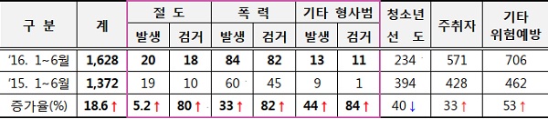 화상 순찰선 도입후 현장 검거율은 평균 90.3%. 지난해 대비 44.4% 증가했다. 특히 절도사범의 90%, 폭력사범 97%, 기타 형사사범의 84%를 검거, 높은 검거율을 보이고 있다.