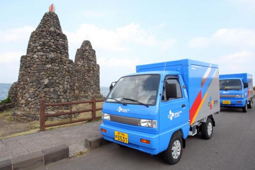 '탄소없는 섬' 제주에선 이젠 택배도 친환경 수단이다. 전기화물차를 이용한 친환경 택배 시스템이 등장했다.