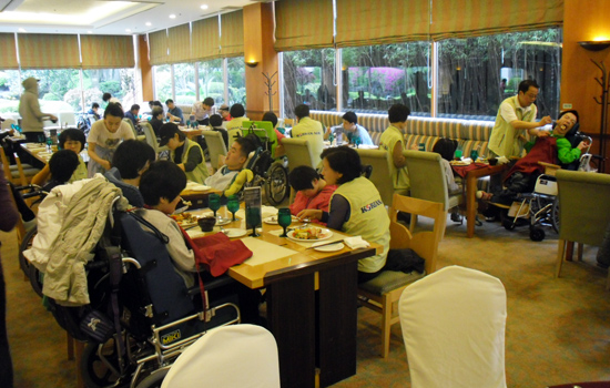 이어 장애인 전용 차량으로 제주KAL호텔로 이동해 뷔페식당에서 점심시간을 가졌다.