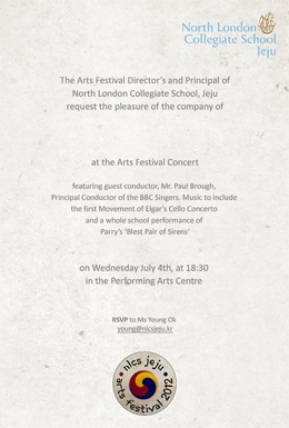 NLCS Jeju의 첫 번째 종합예술 행사로 진행되는 ‘아트 페스티벌’의 클라이막스 무대를 장식할 이번 콘서트는 NLCS Jeju 학생들에게 정규교과과정을 응용한 더 높은 수준의 예술을 배울 수 있는 기회를 제공하기 위해 마련됐다.
