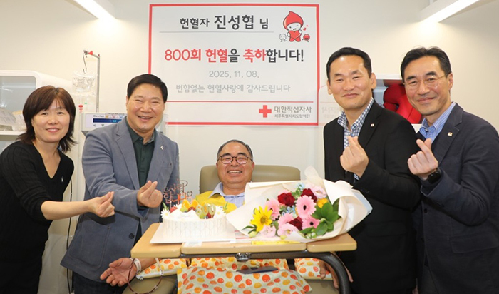대한적십자사 제주도혈액원은 지난 8일 제주시 노형동 헌혈의집 신제주센터에서 진성협씨가 800번째 헌혈을 했다고 10일 밝혔다.