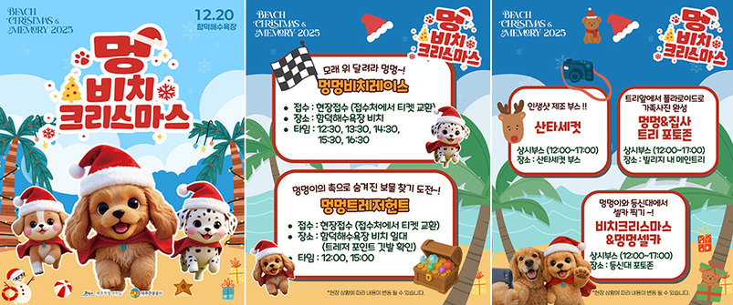 체험 프로그램으로 멍멍 비치레이스, 멍멍 트레저헌트(보물찾기), 산타 세컷, 멍멍&집사 트리 포토존, 비치크리스마스&멍멍셀카 등이 진행된다. 멍멍 비치레이스는 반려견이 보호자와 함께 짧은 거리의 가벼운 레이스 형태로 모래 위를 걷고 달리는 방식이다.