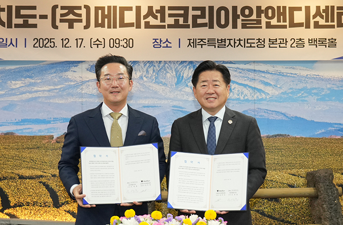 이날 협약식에는 오영훈 제주지사와 김두선 메디선 대표, 김우관 메디선 한국지사장 등이 참석했다.