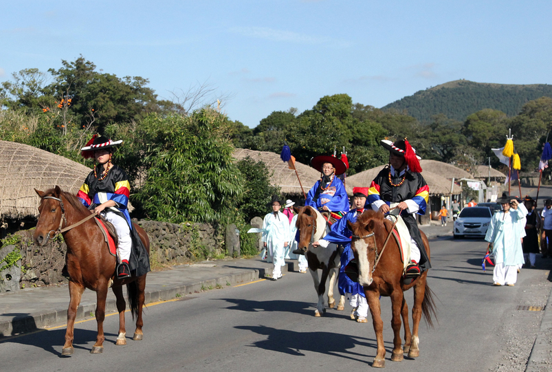 정의현감 부임 행차 재현 행사는 성읍마을 주민들이 대대로 전승해 온 취타대 거리 행진을 필두로 전통 민요와 민속놀이, 전통음식 재현 등이 어우러진다.