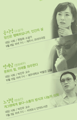 다음달 8일에는 제주시 코리아극장에서 공지영 작가의 ‘당신은 행복합니까. 인간의 삶’ 강연이 준비되어 있다.