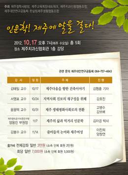 제주대안연구공동체 관계자는 “매해 열리는 인문학 강좌로 각 분야별로 관심도가 높다”며 많은 관심을 부탁했다.