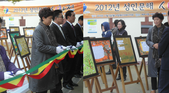 특히 전시회에서는 제주시 성인문해 백일장에서 최우수상을 수상한 동려평생학교의 이신봉씨와 영락학당의 정순임씨의 작품이 전시되어 눈길을 끌었다.