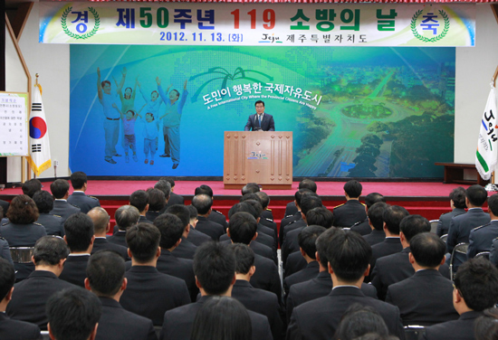 제50주년 119 소방의 날 기념식이 13일 제주도청 대강당에서 열렸다.