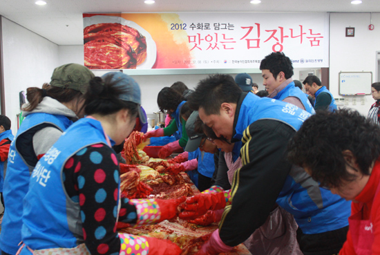 (사)한국농아인협회 제주도협회(회장 박춘근)는 지난 8일 알리안츠생명(주)의 지원으로 ‘2012 수화로 담그는 맛있는 김장 나눔’ 행사를 진행했다.