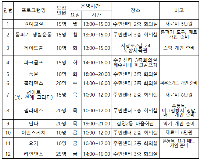 * 삼양동 주민 우선 선발, 모집인원 미달 프로그램에 한해 타 지역 주민 선발
