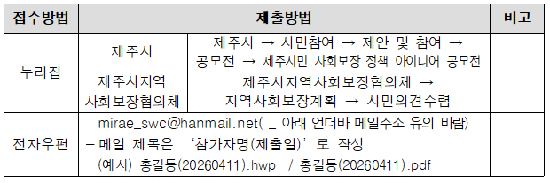 ㅇ 제출방법: 누리집(https://www.jejusi.go.kr), 전자우편(이메일)