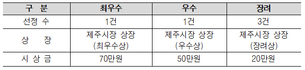 ㅇ 인센티브: 제주시장 상장 수여, 시상금 지급(탐나는전)