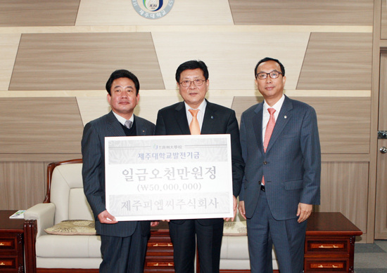 제주피엠씨는 제주대 발전기금으로 오는 2017년까지 매년 1000만원씩 총 5000만원을 약정 지원하게 된다.