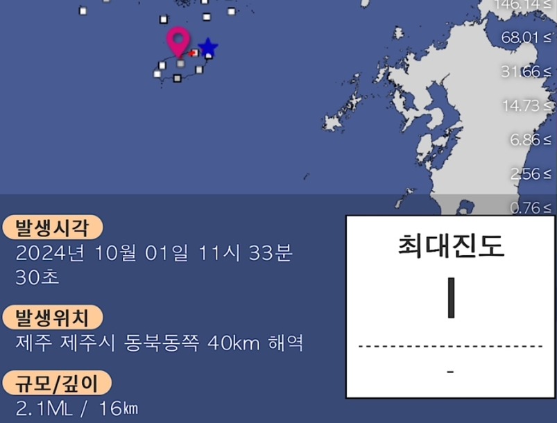 이번 지진의 진앙은 북위 33.62도, 동경 126.94도에 위치했다. 발생 깊이는 16㎞로 확인됐다.