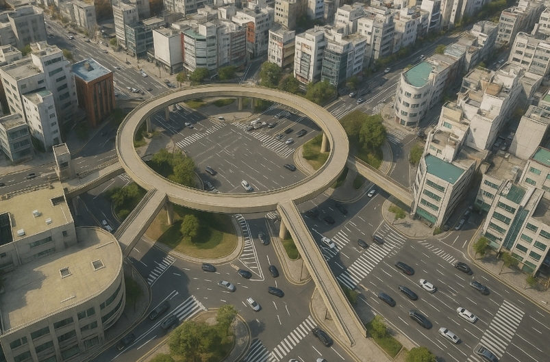 14일 제주도에 따르면 제주시 연동·노형동 일대 교통 혼잡 완화를 위한 대안으로 공중보행로(원형육교) 설치가 유력한 방안으로 떠오르고 있다.