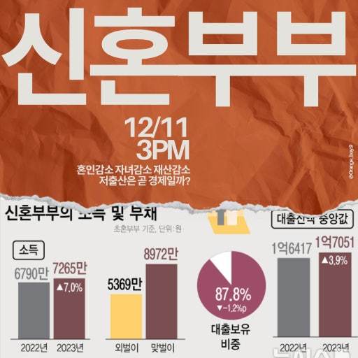 신혼부부 감소율과 다르게 부채부담율은 86.9%에 이른다. 10쌍중 8쌍의 부부가 빚을 안고 결혼생활을 하고 있는 셈이다.