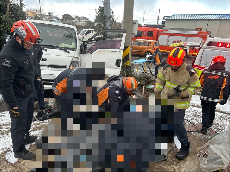 2일 제주소방안전본부에 따르면 이날 오전 8시 11분께 제주시 용담동 한 도로에서 눈길에 미끄러진 차량 2대가 부딪혀 1명이 병원으로 이송됐다.