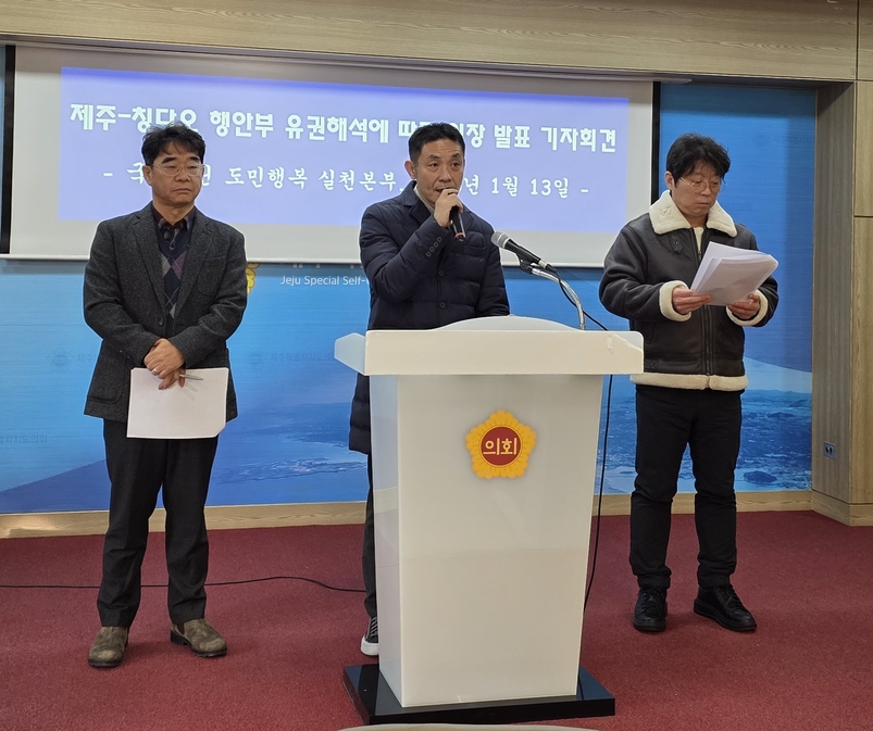 이날 기자회견에서 김병찬 실천본부 공동대표는 “국민신문고를 통해 사과와 재발 방지를 요구했지만 제주도는 이를 거부했다”며 “오히려 해당 사업을 10대 우수 정책사업으로 선정해 자화자찬하는 상황까지 벌어졌다”고 주장했다.