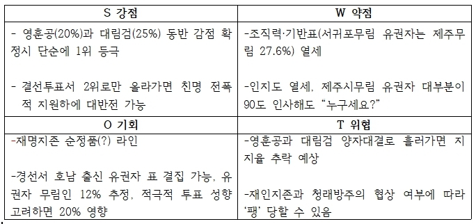 *성곤검, 제주맹주 등극 SWOT 분석