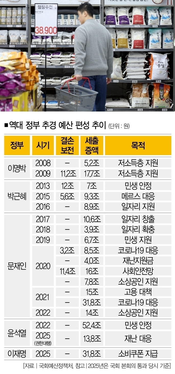 이 대통령은 문화예술 분야 지원과 국세체납관리단 확대, 창업 프로젝트 지원 등을 거론하며 추경 필요성을 언급했다. 6월 지방선거를 앞두고 표를 의식한 이런저런 명목의 예산이 끼어들 소지도 다분하다. 과거 국회 심의 과정이 보여주듯 정부가 편성한 추경안을 심의하는 여야 의원들이 민원성 쪽지예산을 집어넣기도 한다.