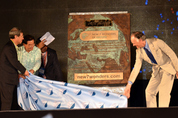 ▲ 지난 13일 제주시 이호태우해변 인근 매립지에서 열린 탐라대전 개막식. 1년 동안 구상, 기획한 제주 최대 축제라는 '탐라대전'이 사실상 개막행사만 치른 채 일주일의 일정도 못 채우고 폐막했다. 제주도민들은 축제가 열렸는 지 조차 모를 정도로 싱겁게 끝났다. 더욱이 탐라대전 개막식은 세계7대자연경관 인증식에 묻혀, '제주 최초 신화역사 스토리텔링형 종합 축제'라는 축제 취지가 퇴색됐다는 지적이 제기되고 있다. 19일 탐라대전추진위원회(위원장 김은석)에 따르면 당초 13일부터 19일까지 일주일간 열릴 예정이던 2012 탐라대전이 16호 태풍 '산바'의 영향으로 지난 16일 오후 일정부터 프로그램이 전면 취소됐다. 추진위는 폐막일인 19일 오후 이호해변 축제장 내 '2012탐라호' 안마당에서 축제를 마무리하는 조촐한 자리를 마련, 축제를 총정리한다고 밝혔다. ▲ 우근민 제주지사와 정운찬 전 총리(제주세계7대자연경관선정범국민추진위원장·맨 왼쪽), 버나드 웨버 뉴세븐원더스재단 창립 회장이 지난 13일 제주시 이호해변에서 탐라대전 개막식과 함께 치러진 세계7대자연경관 동판 제막식에서 가림막을 내리고 있다. 김은석 위원장은 "이번 탐라대전을