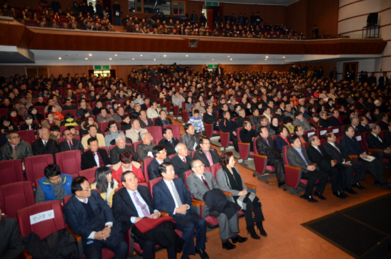 양원찬 재외제주도민총연합회장의 자전적 회고 『사람과의 아름다운 동행』 출판기념회 현장의 분위기다. 18일 오후 2시 제주한라대 한라아트홀은 인산인해나 다름없었다.