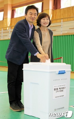 이날 원 후보의 아버지 원두응씨도 투표에 참여해 아들 내외를 격려했다.
