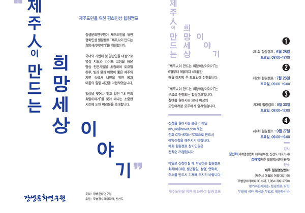 장생문화연구원(박재돈 원장)이 평화인성 힐링캠프 '제주人이 만드는 희망세상이야기'를 연다.