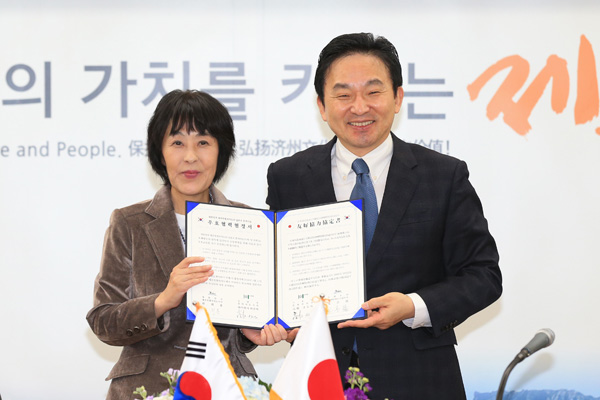 제주도와 일본 홋카이도는 지난 12일 오후 5시 제주도청에서 두 지역 공동발전과 번영을 도모하기 위한 우호도시협정을 체결했다.