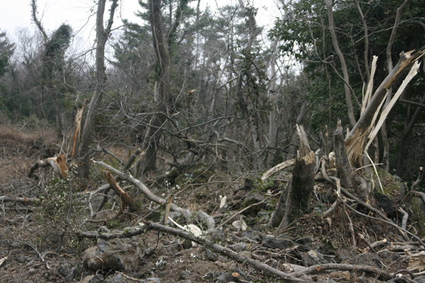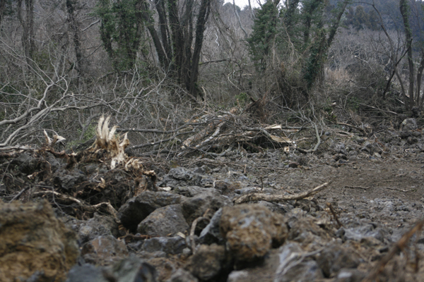 또한 때죽나무 등 수십 그루의 나무가 뿌리째 뽑혀 있거나 줄기가 꺾여 있는 상태였고, 일부 용암석들은 길가 옆에 나뒹굴고 있었다.