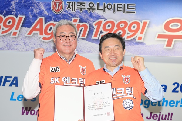 원 지사는 "유료 관중 확보에 어려움을 겪고 있는 제주 유일의 프로구단인 제주유나이티드 홈경기에 안정적인 관중 확보를 위해 문화바우처제도 등을 활용하는 등 적극적으로 지원하겠다"고 약속했다. [제이누리=김리나 기자]