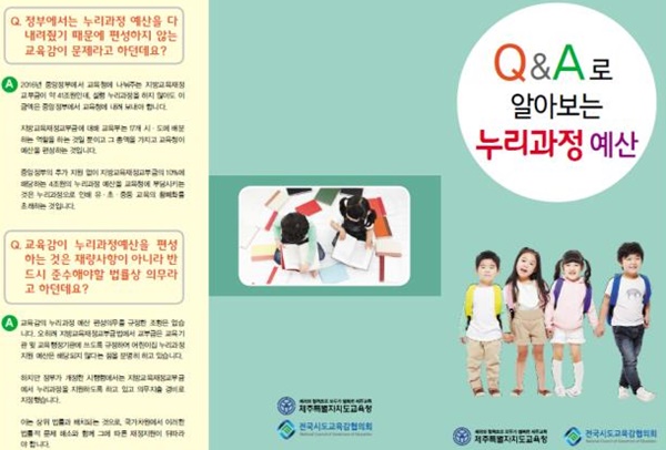이 같은 상황에서 도교육청은 누리과정 예산과 관련 주요 쟁점 사항 해설서인 'Q&A로 알아보는 누리과정 예산' 리플렛을 제작, 도내 어린이집을 비롯해 학교 등에 보급하고 있다.